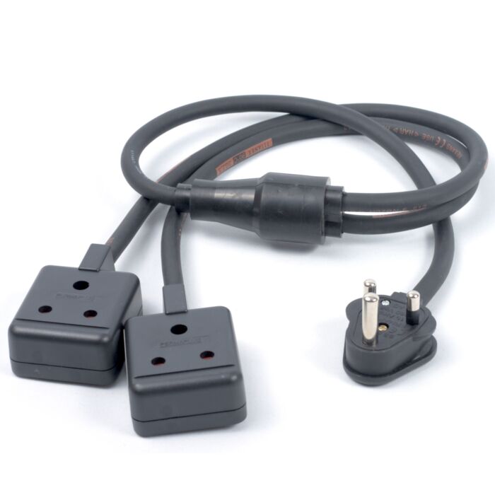 15amp Round Pin Plug to 2 Sockets, Splitter cable made from tough components
