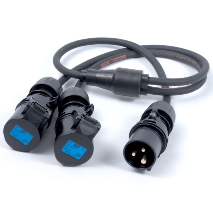 16a PCE Plug to 2x 16a PCE Socket, Professional AC Y Splitter Cable,