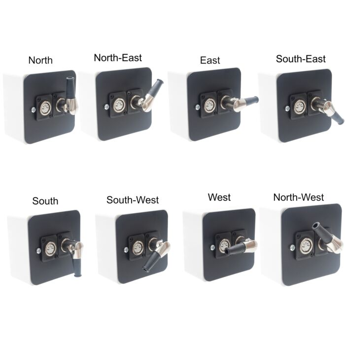Use the guides below to determine the cable exit that you require. Take note of the pin alignment, in this case frowning, and choose the direction accordingly. If your input pins are smiling at you, choose the opposing direction.