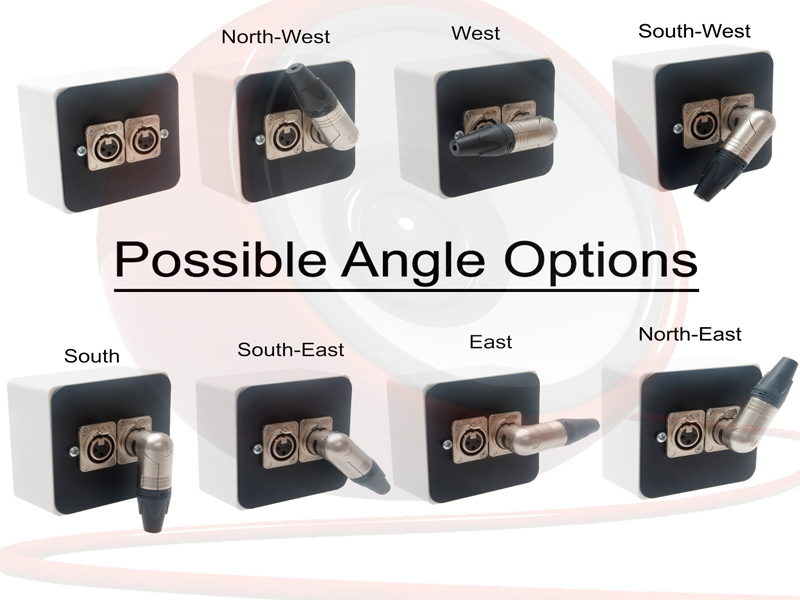 Squareplug Female & Male XLRs offer the full 360 degree rotation, cables can exit radially at 8 different angles (every 45°).
