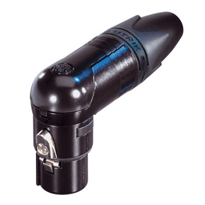3 pole right angle female cable connector, black metal housing, gold contacts