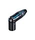 Easy to assemble 8 + 2 pole right-angle male XLR cable connector, black chrome metal housing, secure locking and proven Neutrik chuck type strain relief