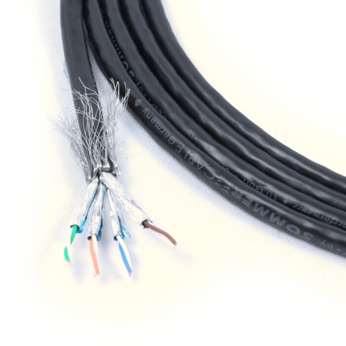 And this despite its tough, robust jacket material made of PVC and S/FTP construction with braided shielding and paired AL/PT foil shielding around the 4x2xAWG26/7 cores. The overall design guarantees fulfilment of CAT.6a performance up to 500 MHz.