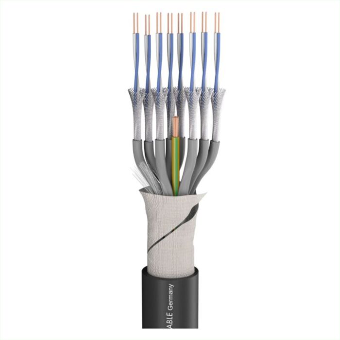 The SC-Quantum QMC HIGHFLEX is absolutely torsionfree, i.e. it can be wound in a figure of “8“ easily and will not twist when winding or unwinding it. Not only the S-PVC-jacket, which is cold-resistant down to –30 °C and notch-resistant, feels soft – due to the superfine 0.07 mm (!) individual copper litz and the PEinsulated wire insulation, even the interior is wonderfully supple and unbreakable. From the 8-pair version upward we have included an extra yellow/green protective earth wire to provide for added stability and safety (PE = protective earth).