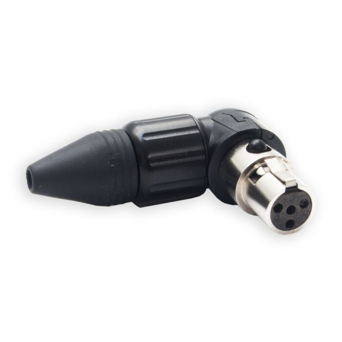 Released by Switchcraft in 2017 this innovative product expands the original TA4F range. The angled body of the connector is a space saving idea aimed at the pro-audio and pro-camera market where devices mounted into cases require a robust connector that can be angled to suit. When used with wireless body packs this improves the longevity of cables by reducing the bend-stress. A very clever and very useful connector in a range of applications